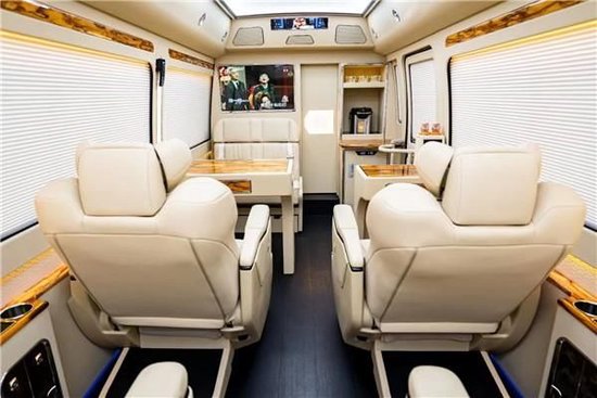 丰田考斯特改装商务车在内饰上的改装项目有很多。座椅,地毯,窗帘,冰箱,隔断,影音系统,办公桌,秘书席等等,内饰上的每一步哦我们都可以根据自己的需要进行设计,打造一款我们专属的私人高级座驾。