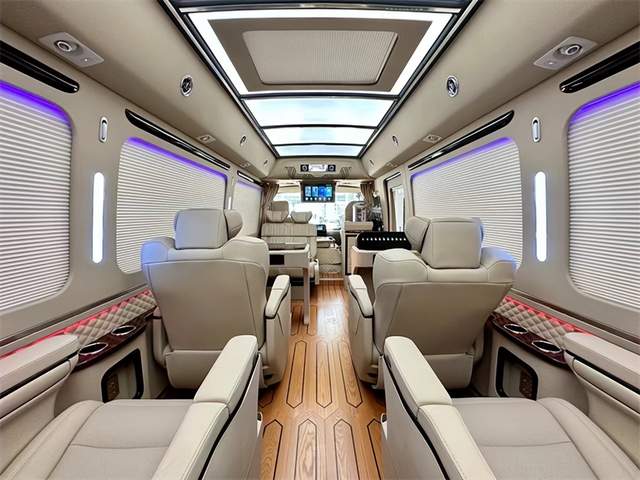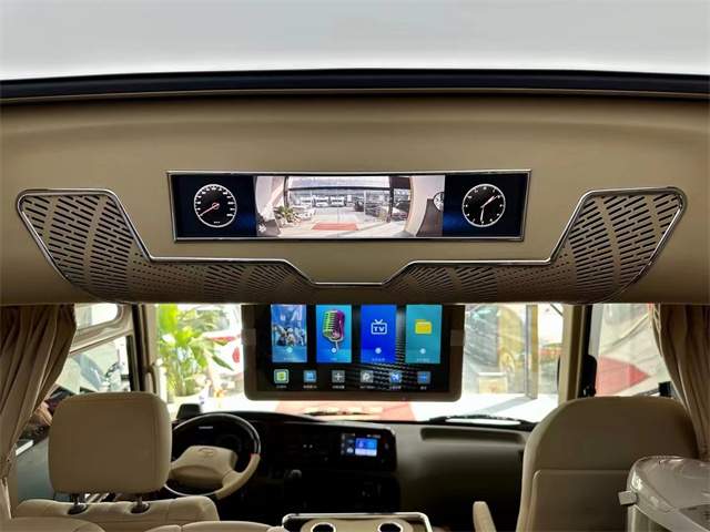 豪华高档办公桌以桃木及真皮为材料,打造最舒适高端使用的办公环境。360度可选装首长席,双人汇报席,方便旅途中的您进行紧急会议,舒适的座椅,实用的办公设置,贴心的电源以及显示屏设置,考斯特高级改装于细节之处展现尊贵风格,在平凡之体现贴心设计。
