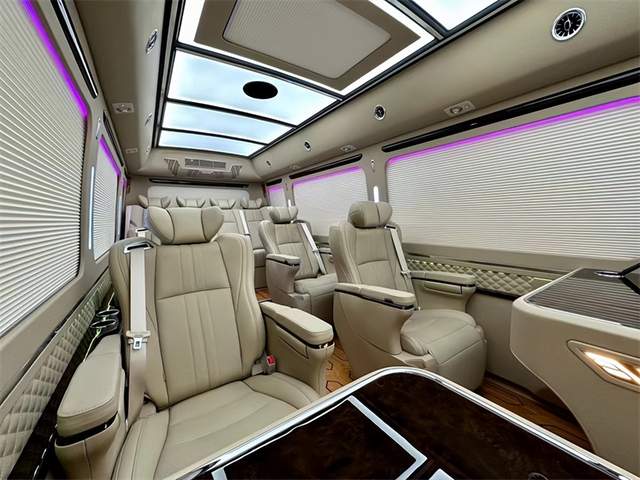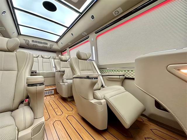丰田考斯特12座高端改装商务车更加注重商务旅行中办公的实用性。真皮航空座椅,电动调节装置可以让您自行调节最舒适的空间距离以及靠背以及脚托的角度,特殊的座椅构造,增加腰部的支撑,宽敞的空间让您的双腿收放自如,忘却旅途的紧迫感,体验如家般的感觉,缓解您在行车旅途中的疲劳。