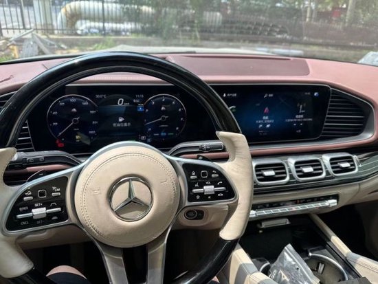 奔驰GLS450 (配置|询价)升级为迈巴赫GLS600后,内饰的视觉效果更加豪华,方向盘也是全新的三辐式多功能、改装后内饰和外观采用了更多的机械元素,稳重感十足。12.3英寸的显示屏更显科技感,面板全部是细腻的真皮覆盖,质感十足。