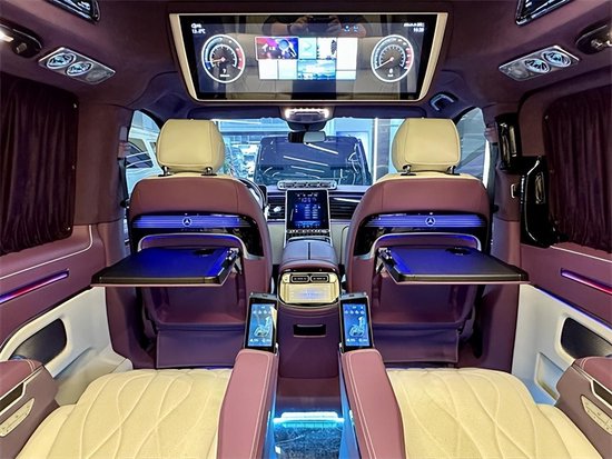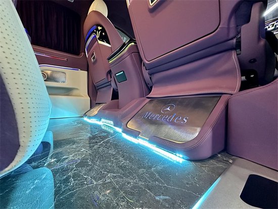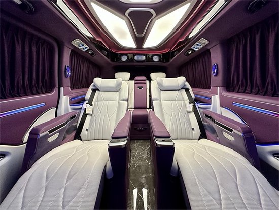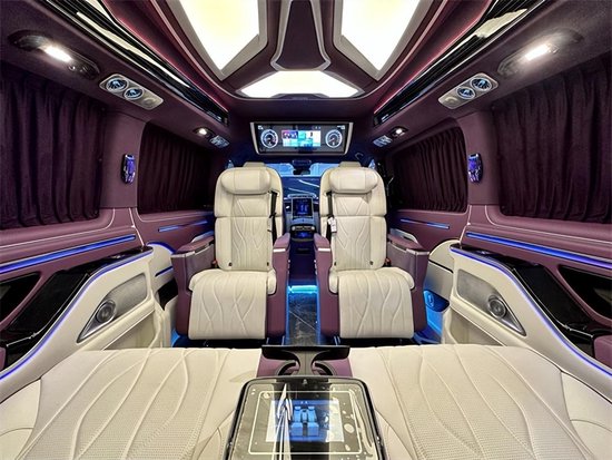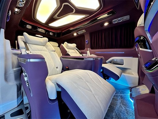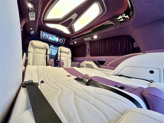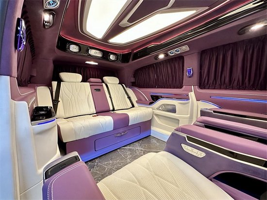 奔驰威霆改装高顶7座皇庭一号打开车门顶部豪华的满天星氛围灯全新设计的氛围灯组照亮整个空间让乘客瞬间解除一天的疲劳让心情愉快轻松,二排豪华航空座椅可旋转 通风 加热 按摩 腿托等10项电动调节功能,整车内舱采用高级皮与麂皮绒包覆搭配桃木的点缀整车犹如移动的皇宫豪华。
