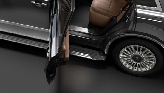 完全倾斜的后排座椅可以让乘客真正放松,类似于四座MPV,后门采用侧滑门,这在SUV上并不多见,可以为车门带来更大的开口,配合自动伸缩的电动踏板和易于抓握的C柱握把,后座乘客可以自然优雅地进出。