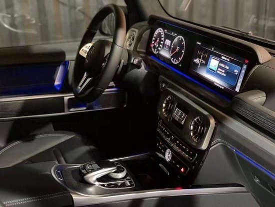 23款奔驰G350柴油内饰方面豪华气息浓厚,仪表盘采用双炮筒式设计,再配合中间的液晶显示屏,粗犷之中又不失精致,宽广的空间, 让人瞬间有一种自由奔放的感觉, 大量的真皮设计以及一些恰到好处的点缀材质,尽显高贵奢华。中控仪表的设计又很有科技感。
