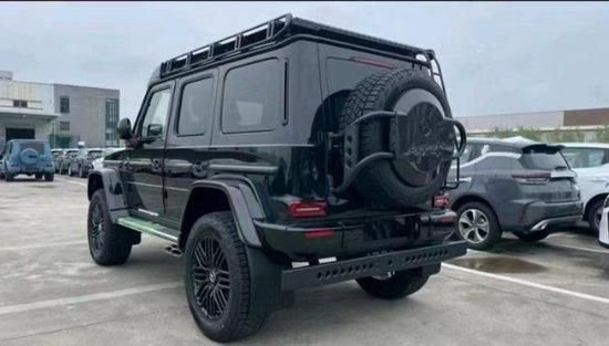 奔驰G (配置|询价)配置咨询63 4X4加宽了轮眉,新增加了车顶行李架,并还设置了专门的梯子可以方便拿取行李,尾部备胎也看上去更大,整个新车离地间隙变得更高,尾部还新增了一个辅助保险杠。肉眼可见的越野性能全面提升。作为全新一代的升级,新车拥有G 63车型的包围和AMG专属的Green Hell Magno车漆,展现出强大的性能