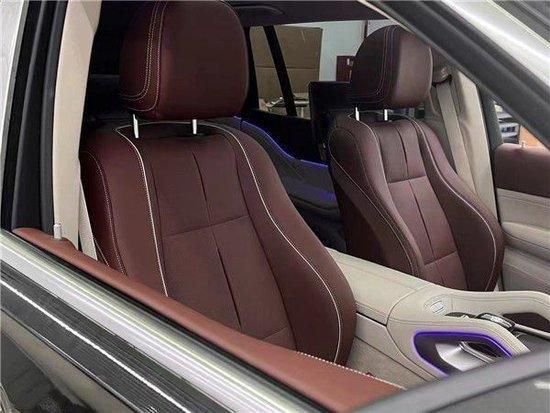 23款奔驰GLS450改装后排座椅改成了两座座椅,安装带平板控制、无线充电器、小桌板的贯穿长条马鞍,构建长途旅行中恬静的车内氛围及充分放松的乘坐体验。