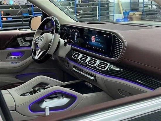 23款奔驰GLS450改装整个内饰主打简约时尚与豪华感,特别是12.3英寸的液晶屏幕,镶嵌在中控台里面,凸显出很强的科技感,并且里面融入了很多高科技装置,操控的时候特别方便,这会给车主带来更完美的驾驶体验。表台上的通风口采用了迈巴赫原厂配件,升级后的迈巴赫GLS600标志性的连体双屏匹配了最新的MBUX人机交互系统,让整车功能使用起来更急便利,与此同时,新车还搭载了带自适应侧面碰撞保护,交通拥堵辅助与主道变道辅助的奔驰最新一代只能驾驶辅助系统,有效保障行车安全。