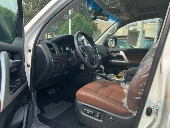丰田酷路泽5700 21款 白米 (国六B)有京 环、 VXR 8气囊、丝绒座椅、285/60R18轮、天窗、一键启动、智能卡、冰箱、遥控启动、大屏、倒车影像、LED氙气大灯、主驾驶电动座椅、新款中网、镀铬前小杠、行李架、前2后4电眼、巡航定速、桃木多功能方向盘、桃木内饰、二挡起步、车身稳定系统、蠕行、上坡辅助、中央差速锁、车身彩条、镀铬门把手、航踏、防撞条、前雾灯、内门把手镀铬、大灯高度手动调节、拖钩、尾翼带刹车灯、中排座椅带中央扶手。天津永杰行国际贸易有限公司
