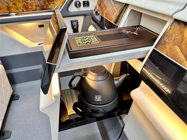 前舱跟后舱独立区分,用一块升降电视隔开,而后舱才是这款商务车的重中之重。个性化定制的细节,打造独一无二的总裁座驾奢享。40寸车载娱乐系统搭载了定制5G网络,配备进口丹拿音响,不仅能实现实时远程视频会议,还可在旅途中享受娱乐影音,和家人朋友一起嗨唱KTV。它是一间移动的总裁办公室、也是一家在路上的私人影院、还是您放松娱乐的移动K歌房。