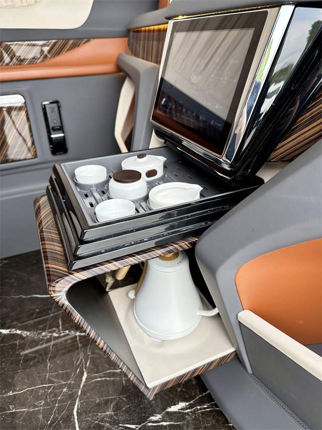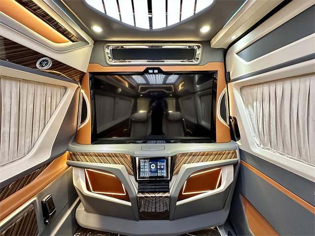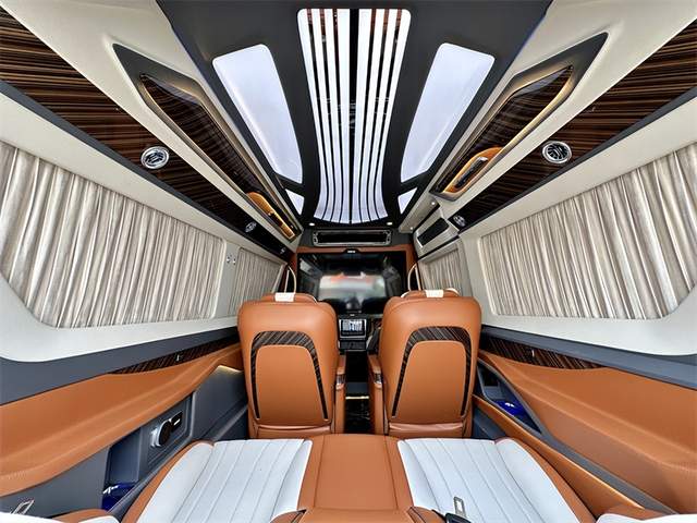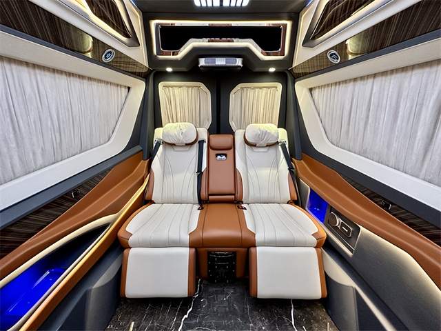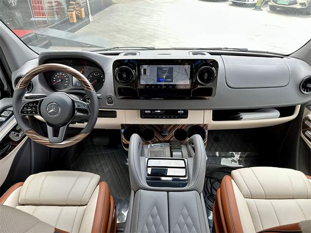 经典款的7+2版内饰设计以舒适为主,为乘客提供宽敞的座位空间。而带吧台茶台的7座版则结合了商务与奢华,满足商务会客和休憩的需求。对于喜欢出门旅游的用户,带卫生间带简易厨房的6座旅居版能够提供更多便利和舒适。此外,进口奔驰斯宾特的内饰改装定制颜色方面更是能根据客户的需求进行任意定制,为用户打造独一无二的豪华空间。