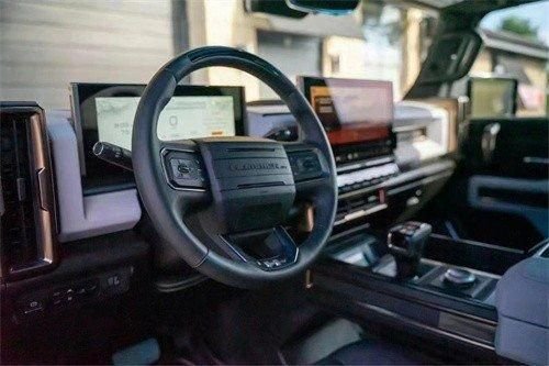 23款悍马EV皮卡内饰方面,采用了当下流行的双屏设计,配备了13.4英寸大型信息娱乐屏幕和12.3英寸数字仪表板,其配备的全景影像摄像头最多可提供18种不同的视图,进一步提升了车辆的科技感。并且在驾驶过程中,信息娱乐显示屏和组合仪表中的越野部件会告知驾驶员车辆的扭矩输出、锁止差速器状态、轮胎压力、俯仰和滚转角、扭矩分配等信息。