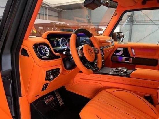 奔驰AMG G 63 4X4加宽了轮眉,新增加了车顶行李架,并还设置了专门的梯子可以方便拿取行李,尾部备胎也看上去更大,整个新车离地间隙变得更高,尾部还新增了一个辅助保险杠。肉眼可见的越野性能全面提升。作为全新一代的升级,新车拥有G 63车型的包围和AMG专属的Green Hell Magno车漆,展现出强大的性能。