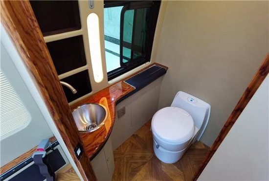 全封闭式豪华玻璃、前中网镀铬套件、不锈钢轮毂罩、车身庄重彩条、车顶换气扇。内饰改装方面有很多选择性,比如桃木真品办公桌,办公桌上面带有杯托和纸巾盒,使用起来非常方便。真皮桃木桌尺寸就比较小一点,但是完全不会耽误办公使用。