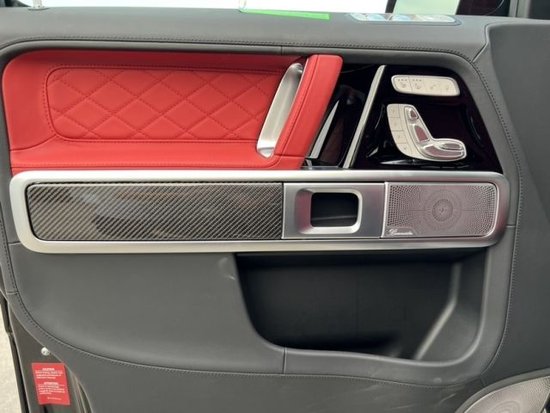G63内饰方面,新G63保留了新G500的整体设计,除配色差异外,新车还换装了全新造型的平底式运动方向盘,其两侧配以打孔皮质包裹,下部镀铬装饰的造型也与新G 500明显不同,看上去十分战斗。此外,全液晶仪表盘+中控大屏的双12.3英寸屏幕设计在新车上也没有缺席,营造出了浓郁的科技感。