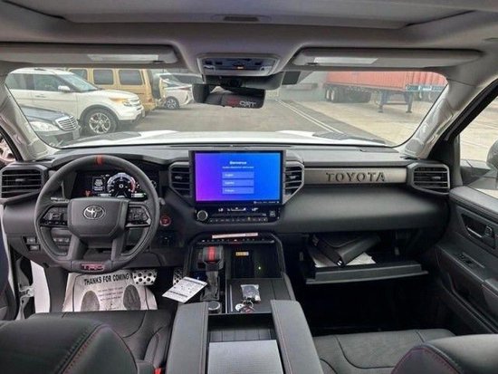 23款丰田红杉的内饰的实用性与空间利用率在这代红杉身上均得到提升,坐进车内,第一感受就是大,前排的两个大尺寸的真皮座椅,自带打孔透气皮料,四幅式多功能方向盘,握在手里的质感不错,转向也没有想象那么重,T型的中控平台,尺寸方面也比一般车型大不少,14英寸的中控触摸屏,集成了几乎所有的影音娱乐以及车身控制功能。