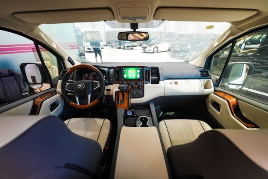 丰田(进口)海狮-HIACE驾驶舱升级9寸导航,(东方众威)搭配360度全车影像,桃木方向盘,升级了原厂桃木纹内饰改为进口豪华感顿显。(东方众威)主副驾驶座椅真皮包覆,主副驾驶座椅四向电动调节带通风加热,(东方众威)主副驾驶中间升级车载扶手冰箱。丰田(进口)海狮-HIACE主副驾驶后面,加装了24寸高清液晶电视娱乐系统,全车升级阿尔派音响系统。