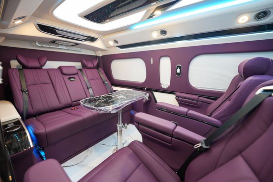 丰田海狮整车升级了加强型的隔音隔热处理,车内带空气净化系统,无线充电系统。在进门侧加装了氧化铝脚踏带迎宾灯的,整车都是采用纳帕级皮质进行包覆的,侧壁红木装饰,手动百褶窗帘,后舱暖风系统,最后说说棚顶灯光,这个有智能触摸控制系统。灯光超级棒。
