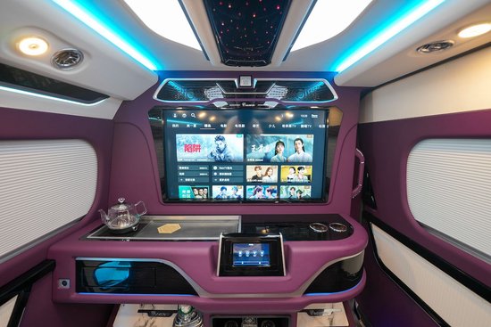 丰田海狮的航空座椅有着超乎寻常的尊贵感和舒适感,侧壁更换意大利顶级真皮包袱手感极佳,侧壁菱形格的设计使整车层次分明立体感更强。侧窗豪华电动窗帘,面料阻燃隔热、隔光、隔音。顶棚更换意大利顶级麂皮绒零污染零伤害的环保材质,搭配桃木件及氛围灯的组合,营造出温馨舒适的乘车环境。