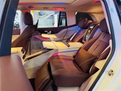 奔驰GLS450改装升级迈巴赫GLS600内饰也极尽奢华,奔驰常见的全尺寸液晶屏联屏设计也用在了迈巴赫GLS上,科技感十足,车内大面积采用顶尖真皮和木纹等材料,加入了自家香氛系统以及柏林之声环绕式音响,原本奔驰在豪华质感上就已经属于业内顶尖水准了,而迈巴赫作为奔驰的顶尖品牌,这方面还要更胜一筹,坐进去感觉就是坐进了头等舱。