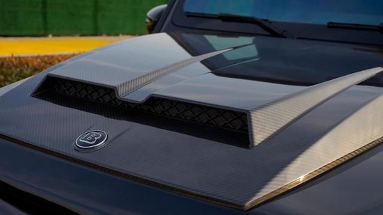 升级后;车尾可以看到巴博斯把奔驰G63标志性的备胎背包移除了,然后再车尾的顶部加装了超大的碳纤维尾翼,这个也是尾部变化最大的,最独特的地方之一,后扩散器也是全碳纤维的,并且也是新设计了垂直的导流竖条,原本备胎罩的位置现在安装了一块巴博斯碳纤维石板,