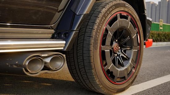 升级前;在来一张G63的大脚,感觉很单调!但是也有人喜欢这种轮毂,但是换了巴博斯套件,这个轮毂就必须要换了