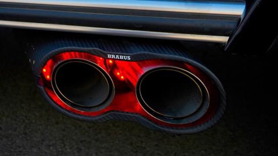 升级后;碳纤维包围的排气管还加装了一圈红色的灯光,