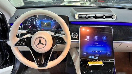 2023款奔驰S500内饰设计就像一座移动的总统套房,相当的豪华。中控部分搭载了双屏设计,12.8英寸的中控大屏以及12.3英寸的悬浮式行车电脑屏,配上米色的内饰设计,颜值感很出众。此外,车内还使用了HUD投影显示以及高亮的钢琴烤漆面板,将科技感与时尚感结合得相当到位。
