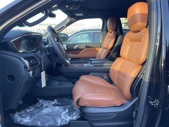 23款林肯领航员的内饰非常奢华,多功能方向盘,中控台的造型与宽大的车身相呼应,新车全部真皮包裹座椅,内饰采用桃木搭配设计,高贵典雅,加高加大的车身除了增加内部空间外,还给人营造一种尊贵典雅的感觉。最新林肯领航员新车采用了2+2+3的座椅布局,第2排采用了两个独立座椅,座椅内侧均配有扶手,舒适度超强。