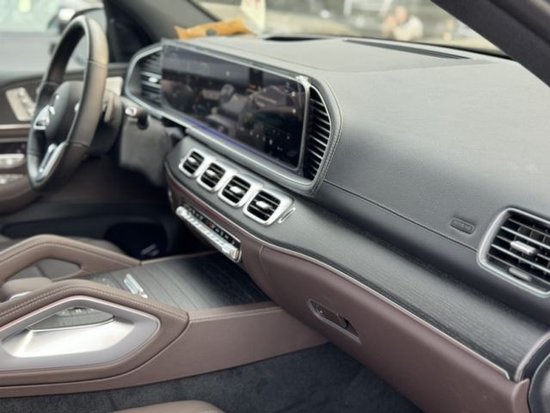 全新2023款奔驰GLS450中控显示屏也移植了奔驰S级轿车的最新设计双液晶显示屏的独立显示和贴合布局,双12.3寸的液晶屏也在显示方面下足了功夫,光线的直射也并不会给车内人员的观看方面造成影响。 环抱式中控台将运动与豪华做了很好的兼顾,中控台采用高档软质材料包裹,同时还有缝线工艺,以及大面积木纹饰板加以点缀。三幅式平底方向盘动感十足,头顶一个全景天窗提供车内采光,带来舒适的驾驶体验。全景影像和抬显显示效果清晰,方便驾驶者的安全驾驶。