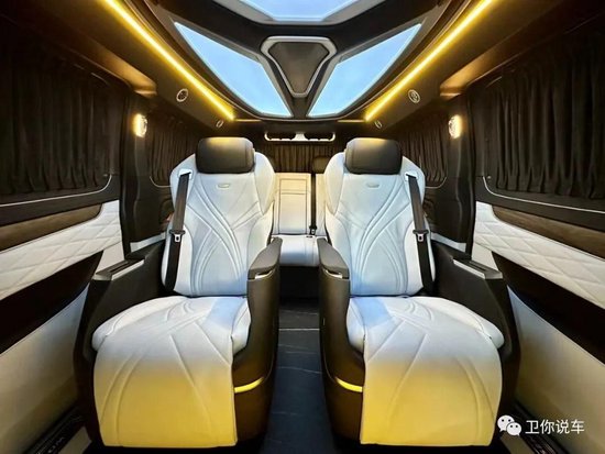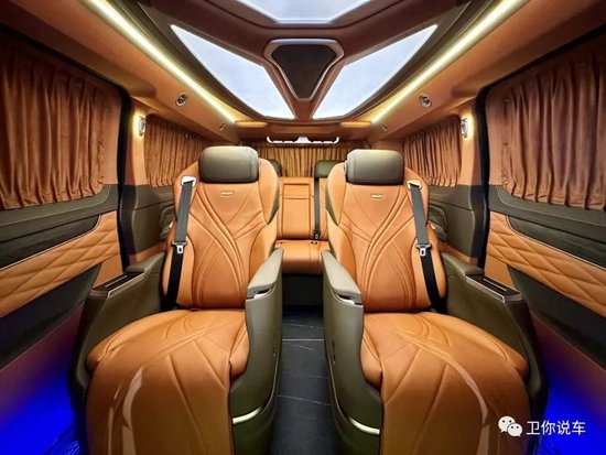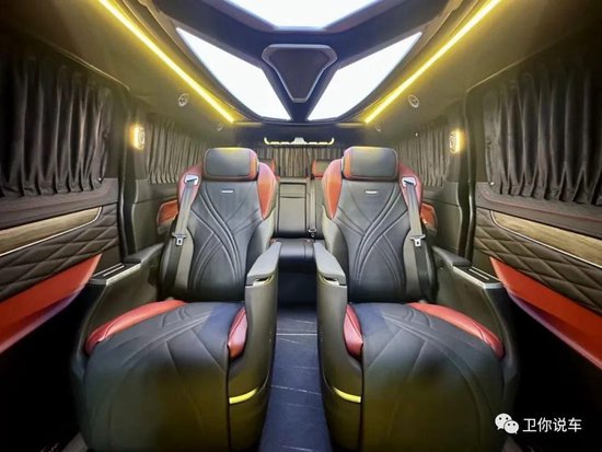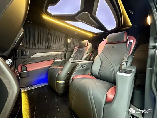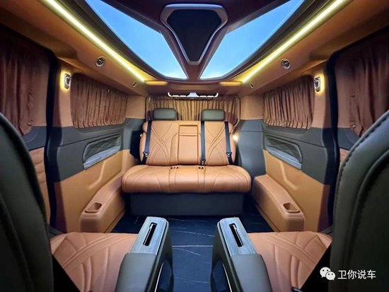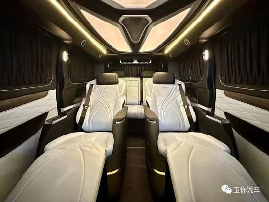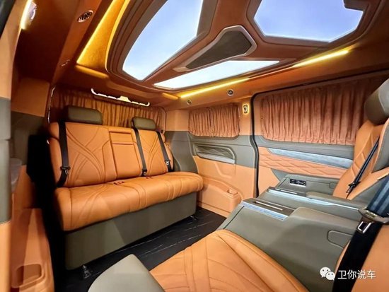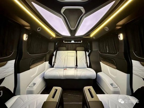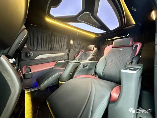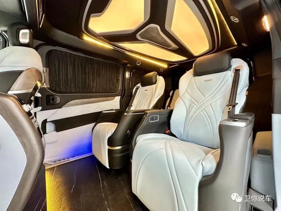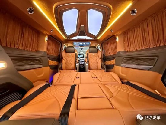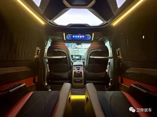 进入车内,你会被其豪华的内饰所吸引。车内带中央扶手冰箱,无论是长途旅行还是日常使用,都能为你提供便利。两张超级豪华航空座椅带有多项电动调节功能,且带有通风、加热、按摩功能,让你在驾驶过程中享受到最舒适的坐姿。更为独特的是,航空座椅还可以旋转,第三排座椅是电动三连沙发床,靠背可180℃放平平卧,无论你是接待客人还是休息放松,都能得心应手。