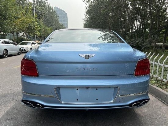 23款宾利飞驰车尾线条圆润饱满,还略带一些复古设计。椭圆形的尾灯辨识度极高,LED灯带的点亮效果非常好看。整体车身线条饱和、柔美,视觉效果则更偏向沉稳、大气的商务范儿。