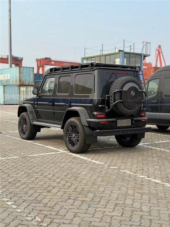 奔驰G63 4X4加宽了轮眉,新增加了车顶行李架,并还设置了专门的梯子可以方便拿取行李,尾部备胎也看上去更大,整个新车离地间隙变得更高,尾部还新增了一个辅助保险杠。肉眼可见的越野性能全面提升。作为全新一代的升级,新车拥有G 63车型的包围和AMG专属的Green Hell Magno车漆,展现出强大的性能。