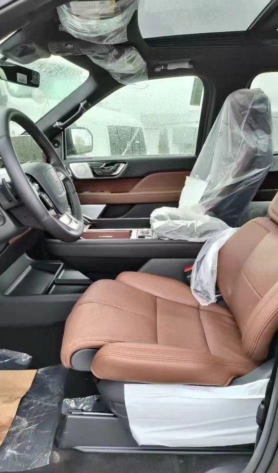 23款林肯领航员内饰方面非常奢华,多功能方向盘中控台的造型与宽大的车身相呼应。新车全部真皮包裹座椅内饰采用桃木搭配设计,高贵典雅。加高加大的车身除了增加内部空间外,还给人营造一种尊贵典雅的感觉。最新林肯领航员新车采用了2+2+3的座椅布局,第二排采用了两个独立座椅,座椅内侧均配有扶手舒适度超强。