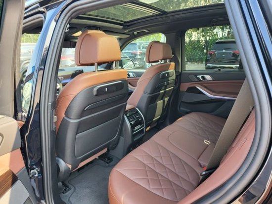 前排是M运动型座椅,包裹感、舒适性都不错。标配电动调节、记忆、主动通风、电动腰撑、加热功能,座椅头枕带X5M标识。车辆带全景天窗,个性化定制墨灰色顶篷。