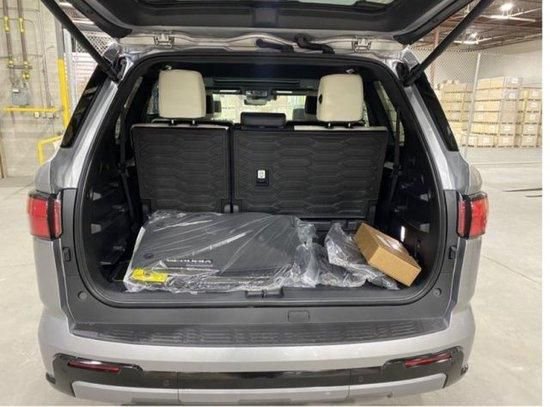 配置:全景天窗,雷测,360环影,胎压监测,流水转向自适应LED灯,外后视镜加热,一键升窗,智能钥匙,2+2+3七座布局,半苯胺真皮内饰座椅,方向盘/座椅电动调节,液晶仪表,氛围灯,14寸中控屏幕,14扬声器JBL音响带低音炮,无线充电,感应雨刷,牵引技术包(包括数字显示后视镜,显示直线拖车路径),方向盘加热,驾驶员座椅记忆/腿托,前后排座椅加热通风,二排和三排遮阳帘/隐私玻璃,后部和货区120V/400w交流电源插座,发光储物箱和手套箱,仪表板/中控台/车门板软包,电尾门一脚踢,22合金轮毂,抬头显示,电动踏板。