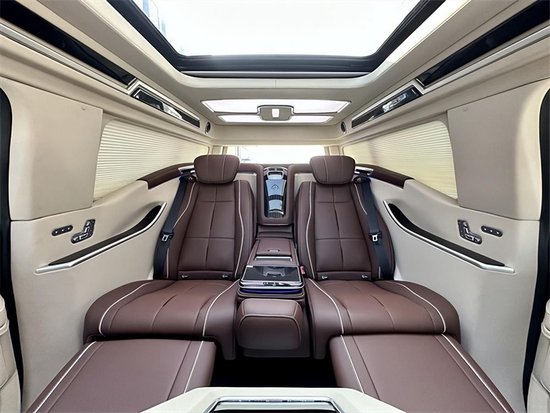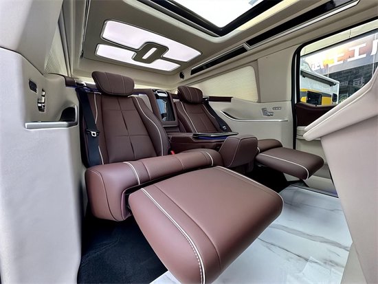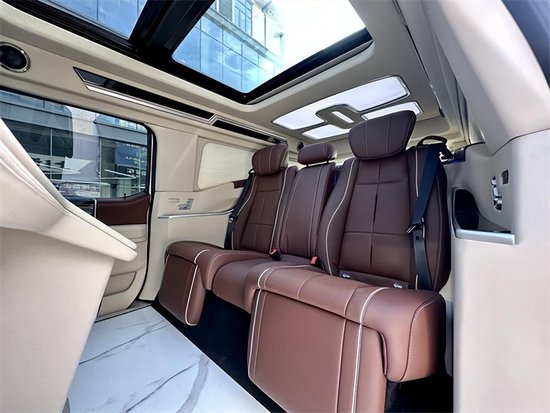 内饰部分,8英寸液晶仪表盘和8英寸中控屏幕放到现在来看已经没有多少科技感了,功能上,也不支持车联网和OTA升级,不过基本的卫星导航和语音识别控制却配备了,还可以选装车载电视,以拓展它的娱乐性。天窗、地板和座椅的改装很大,得益于勇猛者的大尺寸和大轴距,它的车内空间就十分有优势了,座椅布局完全可以参照高端SUV,比如它的2+3的5座布局就和大多数高端SUV车型一样,而且第二排座椅带腿托和电动调节,舒适性不错,前排座椅和第二排座椅标配座椅加热/通风,可以选装座椅按摩。