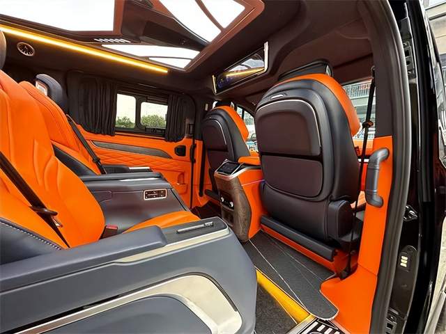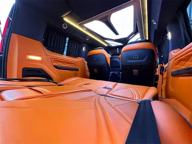 第3排电动调节,配有无线充电,它既可以形成一张豪华双人大床。也可以由两个独立的座椅所组成,两个款式两种布局,可满足不同用车的需求。双侧电动滑门,可选装电动后尾门。同时,第二排座椅与第三排座椅旋转,形成对立的卡座,从而形成商业模式;即使用于家庭旅行,也可以增加儿童的娱乐空间。
