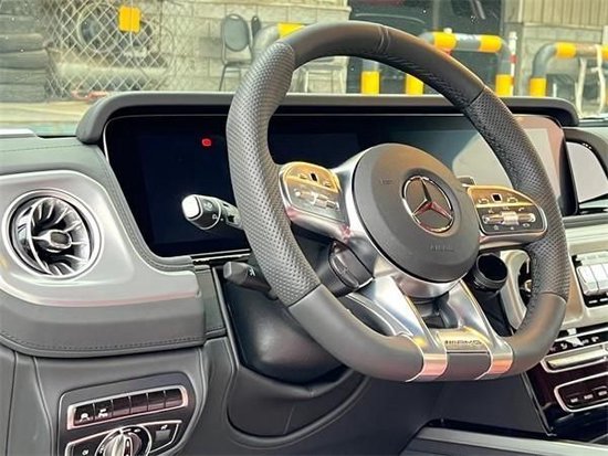 23款奔驰G63内饰方面,奔驰的设计绝对可以用惊艳来形容,无论是经典车型还是超豪华车型甚至是入门级的豪华车上,奔驰的内饰都会让你眼前一亮,当然了这也是奔驰的一个特色。所以这部全新的G63在内饰的表现上也是情理之中的,但是细节上还是有些小小的意外。这种感觉是打开车门的瞬间就能够感受到的。首先仪表和中控屏依旧是采用了同一款液晶屏显示,第一感觉就是科技感爆表。而其他方面例如方向盘,空调出风口,挡杆等等的设计充满设计感。