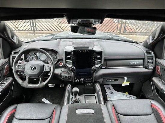 全新道奇霸王龙TRX在内饰部分进一步强化了其高性能版本的形象,中控台和座椅随处可见的TRX标识便是最好的例证。同时,作为道奇家族的旗舰车型,新车还配备了12英寸竖置中控屏幕,除了支持蓝牙、导航和车载Wi-Fi等常见功能,还支持Apple CarPlay和Android Auto手机映射。