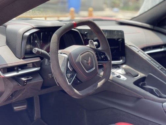23款科尔维特C8敞篷 内饰部分采用了环抱式中控设计,中控台几乎将所有的控制按键和旋钮放置在了驾驶员右侧的面板上,并且全部朝向驾驶位置。此外,新车采用全液晶仪表盘与中控多媒体显示屏的连屏设计