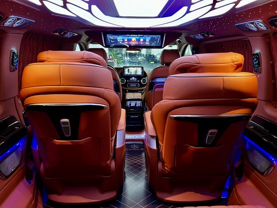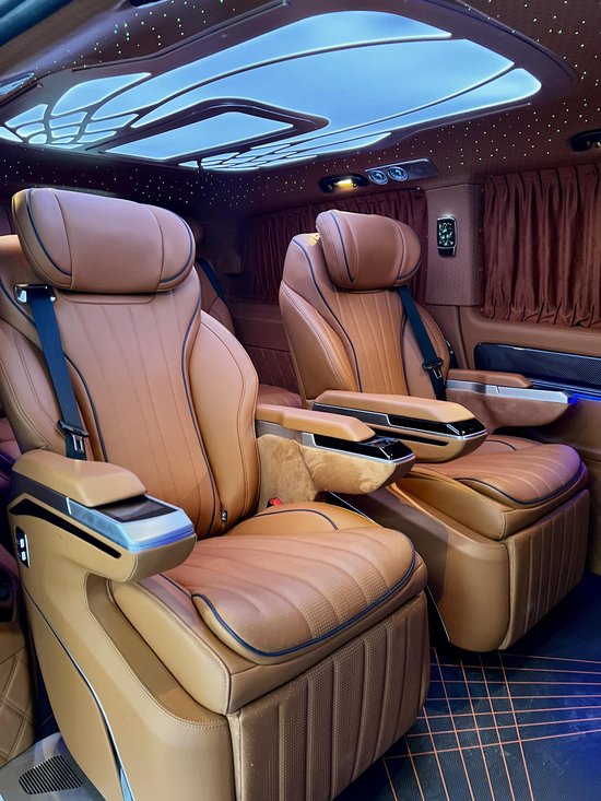 让您花低的价钱来享受一台最高端的奔驰迈巴赫也绝对有面子 V260改装后还配有车厢内的灯光设备,按下按钮,车厢内顿时充满了黄色的炫彩灯光气氛以及漫天星晚上给人看星星的感觉。中控安装了14.1寸显示屏到时影响更加清晰可见还可以休闲娱乐,以及正副驾驶后面的商务桌板给了商务以休闲的功能,后面两个娱乐显示屏可让乘客更加休闲娱乐,商务人士可在会议过后利用车厢的灯光设备等,顿时让氛围轻松起来,可商务可休闲。吸顶电视设计使得车厢给人娱乐休闲的感觉,满天星顶会让您夜间行车抬头仰望,也让人有浪漫的星空臆想念头。倘若把周围的窗帘都拉开,闭上眼深呼吸,感觉与周围的环境很是融合,给人以心旷神怡的完美感