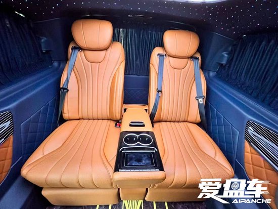 就拿这款车来说选用的就是触摸屏的航空座椅搭配沙发床,地板选用的是水晶印花地板,铝合金迎宾踏板,天使之翼的顶灯、全车包皮、V260仪表台、桃木方向盘、中央扶手冰箱、全车窗帘、星空顶、靠背折叠小桌板、迈巴赫包围、锻造轮毂、车窗饰条、主副座椅电动、大灯、尾灯、等项目大致需要10个W左右。