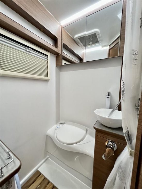 后方为车辆的洗手间区域。这台自由风双拓MAX+房车配备了高端定制的赛特福德马桶。独立水槽、高端卫浴花洒、顶置换气扇、游艇级地板自然是标准配置,还配备了烘干功能,湿气不会闷在其中。300升净水箱+40升灰水箱+60升黑水箱的豪华水路配置,让您能够肆意用水无需担心。 马桶对面还安装了一台烘干滚筒洗衣机,便于清洁衣物,免去手洗的麻烦。好了本款大水大电的戴德自由风双拓展房车小峰哥就同大家介绍到这里。阅览世间美好,带您跨越山河,品味人间烟火,给您一个移动的家 -我是小峰哥