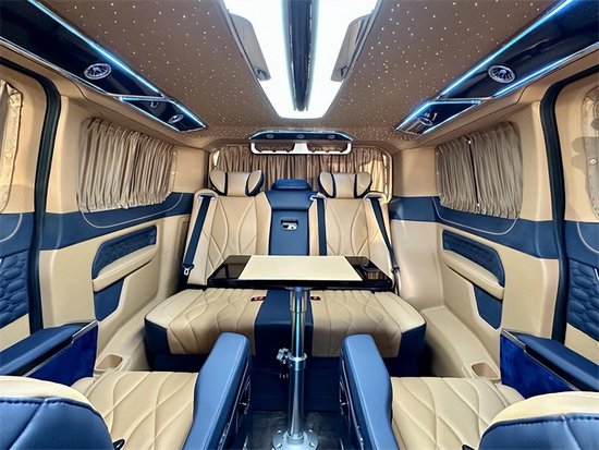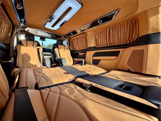 车子在音响方面也是做了大力的改造,用的是影院级别VVcar7.1声道的音响并带有GPS处理器,光是扬声器的数量就有8个,坐在车内声学感受可以得到很大程度的提升。同时无线网络电视机在配合多色的幻彩氛围灯,以及独家定制的天幕顶灯,整体单从眼睛可触的方面来讲,他都会有着非常舒心的感受。这是一款视觉听觉都能够得到很好体验的商务车。