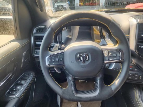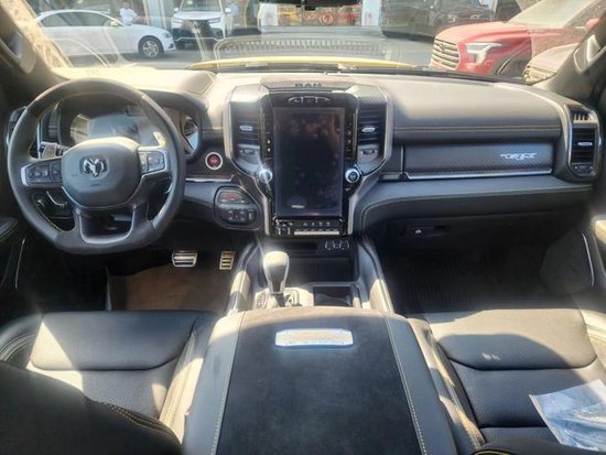 23款道奇霸王龙TRX在内饰部分进一步强化了其高性能版本的形象,中控台和座椅随处可见的TRX标识便是最好的例证。同时,作为道奇家族的旗舰车型,新车还配备了12英寸竖置中控屏幕,除了支持蓝牙、导航和车载Wi-Fi等常见功能,还支持Apple CarPlay和Android Auto手机映射。