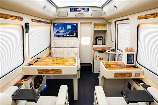 丰田考斯特改装商务车,在内饰的设计上尤其是在座椅的选择上各位用心。原装进口的埃尔法 (配置|询价)座椅,360度可旋转的杭州首首长席。可折叠平方的4连座椅,或者是设计成具有沙发床的布局,丰田考斯特在座椅的布局和材质的选择上表现出了对于乘驾人员的关心体贴。