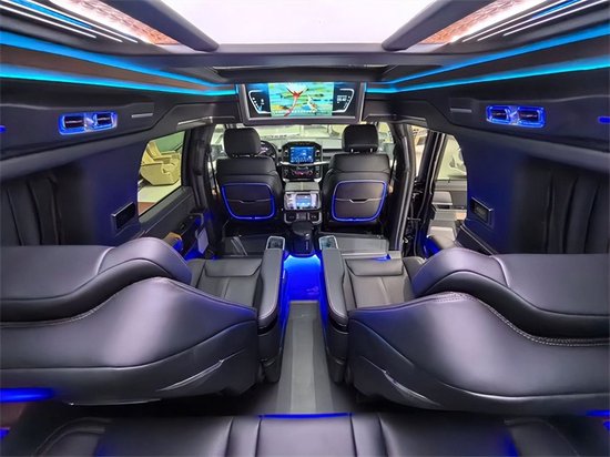 中规版福特F150勇猛者以美国进口的福特F150为原型车,由我们精工打造,通过后尾箱与车体的连接,形成与车身稳固的一体式车厢,同时在原有五座的基础上,加装第三排真皮座椅,完美融汇成为福特F150勇猛者