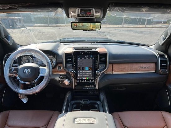 道奇公羊长角号在你打开车门的一瞬间,你就能够感受到这款皮卡的豪华感扑面而来,肉眼能够看到的地方几乎全是皮革材质,仪表板、车门把手、门饰板都是百分百全粒面皮革。对于座椅还是有些许不同,座椅表面还镶嵌有鳄鱼浮雕图案,手套箱以及中控台等处也均有这样的铭牌标记,时刻提醒你这款皮卡身份的高贵。此外,一些细节点缀均采用镀镍的形式,并且为了与长角号这个名称更为贴切,车内多处采用了实木材质,营造一种乡村的感觉!