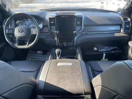 全新2023款道奇霸王龙传承了道奇Ram家族高大威猛的造型设计,同时细节部分融入了更多高性能元素,包括经过黑化处理的前格栅,引擎盖两侧的黑色进气口,以及为了容纳巨大的机械增压器而设计的通风口,前倾式车头,相较中规中矩的家族设计无疑多了几分对路面的侵袭感。车内氛围堪称豪华,绝对可以媲美高级轿车。眼神中没有透露出一丝的活泼神韵,唯一展现出来的只有凶狠。前杠是铁质前杠带拖钩,散发这金属气息,沉稳大气。