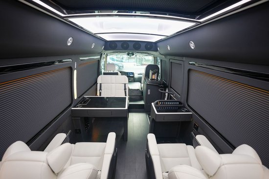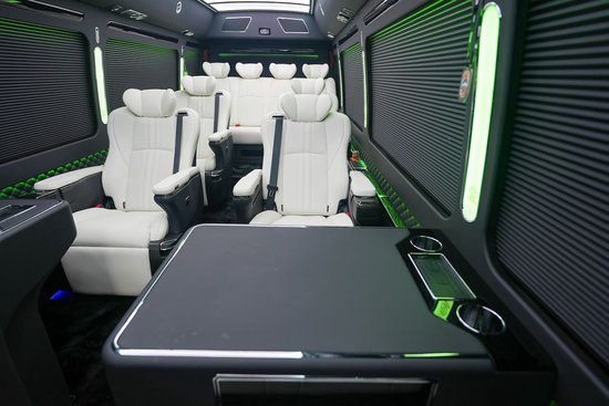 丰田考斯特改装商务车的改装设计不仅仅只是体现您的高贵身份,更是为了给给您的商务旅途带来方便,因此在设计上我们更考虑了您在办公中的所有需求。在车顶处添加LED灯,方便您在旅途中观看书籍或者工作材料。高档办公桌双人汇报新,并且配备了方便的电脑以及手机充电接口,方便而又安全。