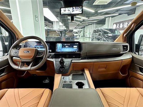 这款是咖色的一个内饰搭配,也是四款颜色中公认的非常有格调比较大气的颜色。标准的去做MPV的布局2+2+3的座位数,整车还标配了,空气悬挂共有四档可以调节,以适应能够走不同的路况,乘坐的舒适感更强。配置方面也是相当的丰富,中央两排的航空座椅,多向的电子调节,双向的腿托支撑,座椅的无线充电以及座椅的按摩,旋转对做他都能够满足。全车搭配的是nappa皮质包覆,以及法式双缝线。在娱乐系统方面也配置齐全,车内有七个扬声器搭配的VV car影院级别的7.1声道的音响系统。娱乐设施的话电视机,我们可以满足。